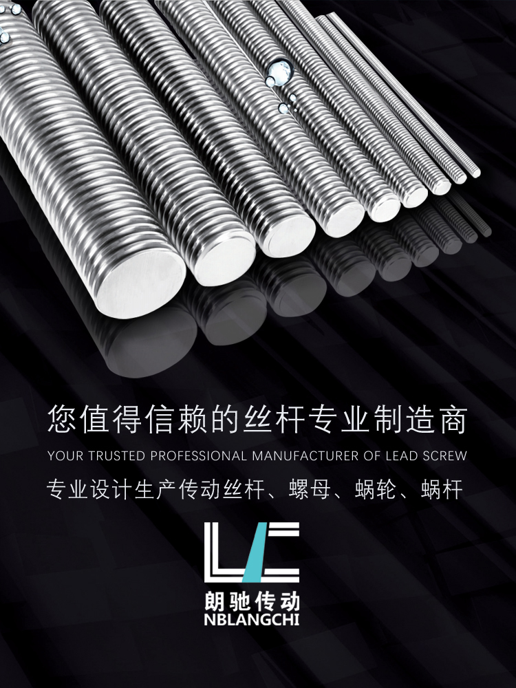 • 寧波朗馳傳動科技有限公司專業生產傳動、升降、推拉、緊固等作用的梯形螺紋絲桿和螺母。螺紋標準有:國標GB、德標DIN103、美標ACME等單頭、多頭及左右旋向的梯形螺紋。絲桿材質有碳鋼、合金鋼、不銹鋼、銅、鋁等;螺母材質有錫青銅、聚甲醛(POM)、碳鋼、鑄鐵、易切削鋼等。可按客戶要求定制特殊規格的絲桿螺母、M0.5-M6模數的蝸輪蝸桿。